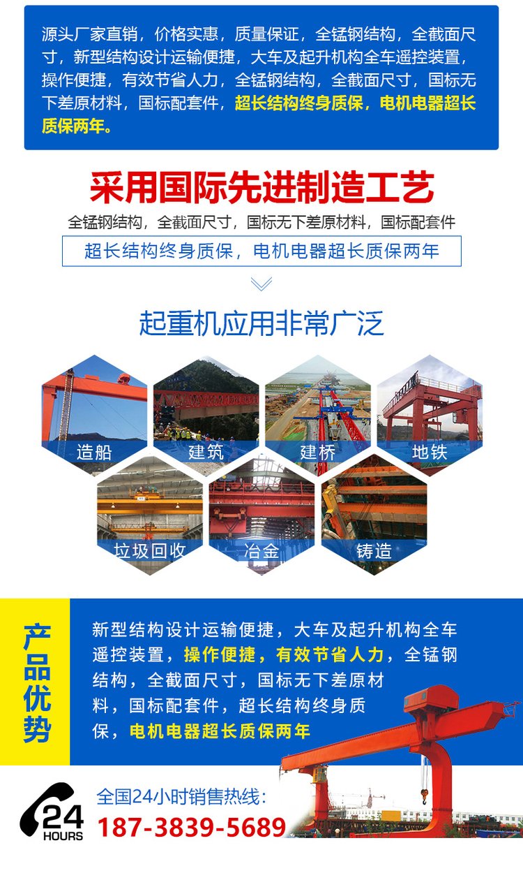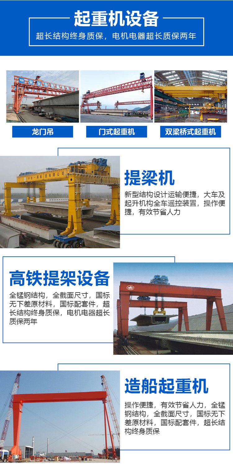 18738395689架橋機主要由主梁、懸臂梁、下導(dǎo)梁、前后支腿、輔支腿、吊梁行車、懸臂吊及電液系統(tǒng)組成。適用于三種不同跨徑單跨簡支梁的架設(shè),作業(yè)效率高。本類型架橋機能夠架設(shè)直線、曲線、縱坡的等跨及變跨雙線預(yù)應(yīng)力混凝土整孔箱梁。該 架橋機除了能夠進行標(biāo)準(zhǔn)架設(shè)作業(yè)外,還能滿足首末跨架設(shè)、曲線架設(shè)、變跨架設(shè)、跨連續(xù)梁、結(jié)合梁、連續(xù)鋼構(gòu)等。既有橋梁架設(shè)、簡支變跨連續(xù)架設(shè)等工況施工。具有簡支架設(shè)、定點起吊、梁體吊裝穩(wěn)定性好、作業(yè)效率高、安全可靠、變跨調(diào)整方便、操作方便等特點。